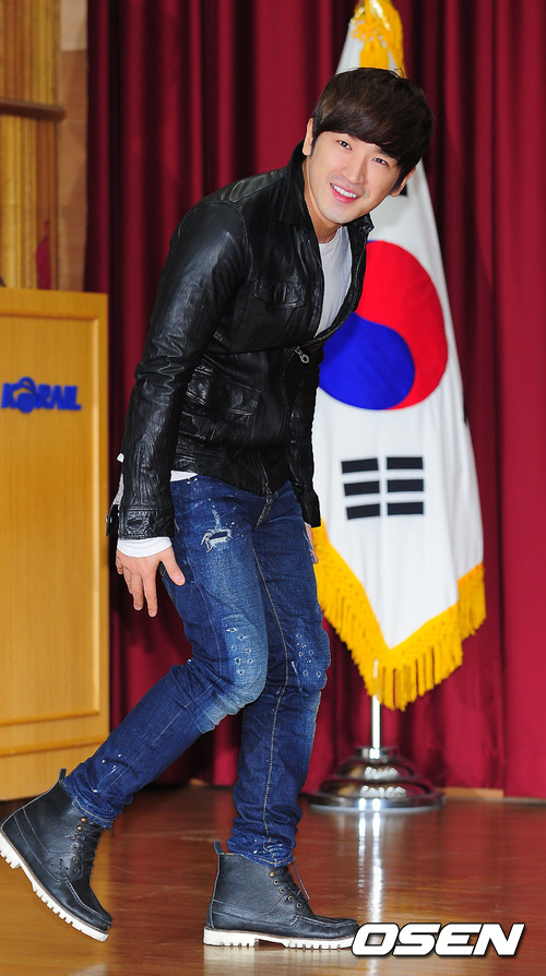 2일 오전 서울역에서 소집해제를 한 신화 멤버 가수 이민우가 한국철도공사 대강당에서 이민우가 인사를 하며 입장하고 있다.