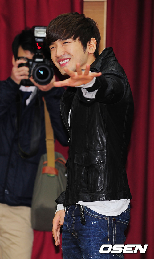2일 오전 서울역에서 소집해제를 한 신화 멤버 가수 이민우가 한국철도공사 대강당에서 소집해제 인터뷰중 팬들에게 포즈를 취하고 있다.