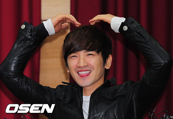 2일 오전 서울역에서 소집해제를 한 신화 멤버 가수 이민우가 한국철도공사 대강당에서 소집해제 인터뷰를 마치고 하트사인을 보내고 있다.