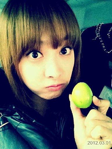사진 속 빅토리아는 보통 사이즈 대추보다 훨씬 큰 연두색 대추를 들고 눈을 동그랗게 떴다. 또한 볼에 바람을 살짝 넣어 한층 귀여운 표정을 지었다.