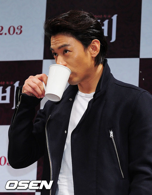 2일 오후 서울 압구정 CGV에서 열린 영화 '가비' 쇼케이스에서 김소연과 주진모가 커피트립 시연을 한 후 자신의 커피를 마시고 있다.