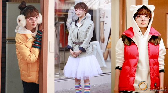 담당 스타일리스트는 “송민정씨가 피부도 하얗고 얼굴도 작아 분홍 안경테와 하얀 귀마개가 더 빛을 본 것 같다. 의상도 송민정씨가 입으면서 귀엽고 깜찍한 느낌이 더 살아났다”라며 송민정의 의상소화능력을 설명했다.