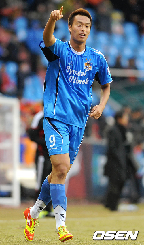 3일 오후 경상북도 포항 스틸야드에서 열린 '현대오일뱅크 K리그 2012' 개막전, 전반 선제골을 성공시킨 울산 김신욱이 환호하고 있다.
