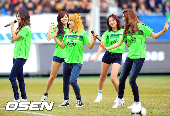 3일 오후 전주월드컵경기장에서 열린 '현대오일뱅크 K리그 2012' 전북과 성남의 경기 하프타임 걸그룹 포미닛이 축하무대를 펼치고 있다