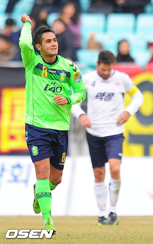 3일 오후 전주월드컵경기장에서 열린 '현대오일뱅크 K리그 2012' 전북과 성남의 경기 후반 전북 에닝요가 추가골을 넣고 환호하고 있다.