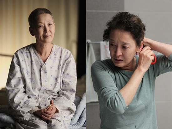 그는 삭발장면에서 가족들에게 머리가 빠지는 힘없는 환자의 모습을 보여주기 싫어 단호하게 가위질을 하는 엄마의 모습부터 잘려나가는 머리카락 뭉텅이에 젖은 눈시울을 보이다 끝내 오열하고 마는 연약한 여인의 모습까지 담아내며 촬영장을 눈물 바다로 만들었다는 후문이다.