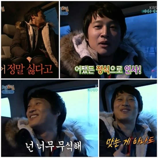 하지만 이내 “나는 ‘1박2일’과 맞는 게 하나도 없다”면서 “나는 여행을 좋아하지도 않으며 찾아다니기 귀찮고 게임도 못한다. 심지어 상식마저 부족하다. 아내가 나보고 너무 무식하다고 한다”고 ‘1박2일’에 대한 장난 섞인 거부감을 표현해 웃음을 자아냈다.