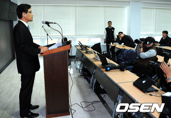 [OSEN = 백승철 기자] 양해영 한국야구위원회(KBO) 사무총장이 5일 오후 서울 도곡동 야구회관에서 대국민 사과문을 발표하고 있다.