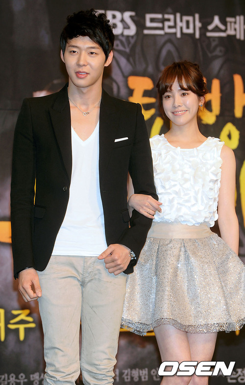 [OSNE=박준형 기자]5일 오후 서울 잠실호텔 크리스탈볼룸에서 진행된 SBS 새 수목극 '옥탑방 왕세자' (연출 신윤섭) 제작발표회에서 박유천과 한지민이 포즈를 취하고 있다