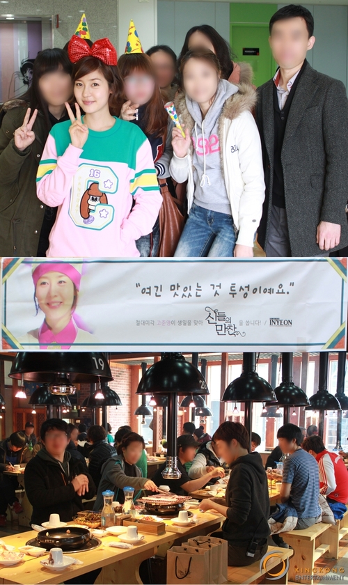 성유리의 팬클럽 회원들이 그녀의 생일을 맞아 배우들과 현장 스태프에게 삼겹살과 정성 가득한 선물을 준비해 촬영장을 방문한 것.