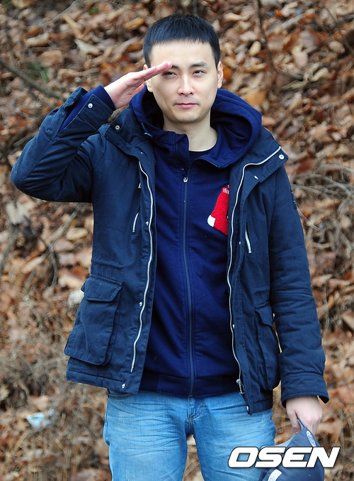 6일 오후 의정부 용현동 306보충대를 통해 입소하는 가수 민경훈이 훈련소 인근에서 취재진들을 향해 거수경례를 하고 있다.