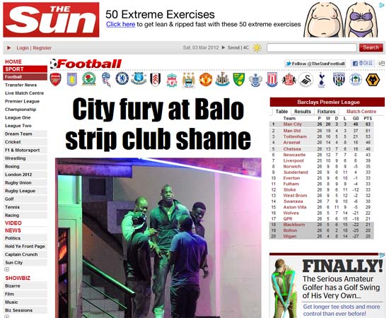 더선은 지난 3일(이하 한국시간) 리버풀의 스트립 클럽 앞에서 친구들과 함께 클럽을 나서는 발로텔리의 사진을 공개했다. 이로 인해 적잖은 곤경에 빠졌던 그다.