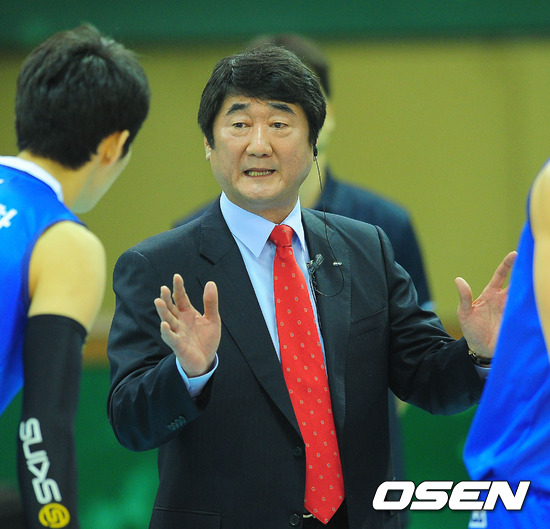 7일 오후 경기도 수원시 장안구 수원실내체육관에서 열린 'NH농협 2011-2012 V리그' KEPCO와 삼성화재의 경기에서 삼성화재 신치용 감독이 선수들에게 지시를 내리고 있다.