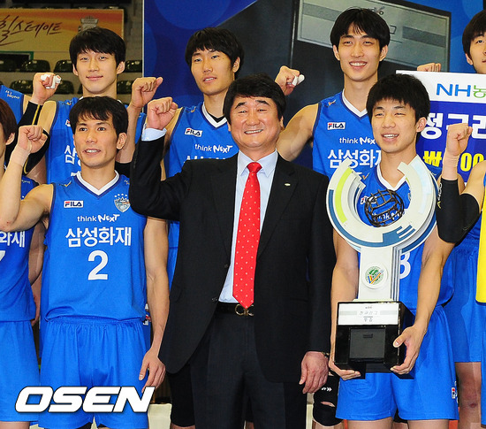 한국남자배구의 최강팀 삼성화재가 다시 한 번 역사를 새로 썼다. 7일 수원실내체육관서 열린 '2011-2012 NH농협 V리그' 6라운드 경기서 KEPCO45를 3-1(25-17, 25-14, 20-25, 25-23)로 꺾고 정규리그 우승을 확정지은 삼성화재 신치용 감독은 우승의 원동력 세 가지로 팀웍, 가빈, 그리고 팀의 주축인 고참들의 존재를 꼽았다.