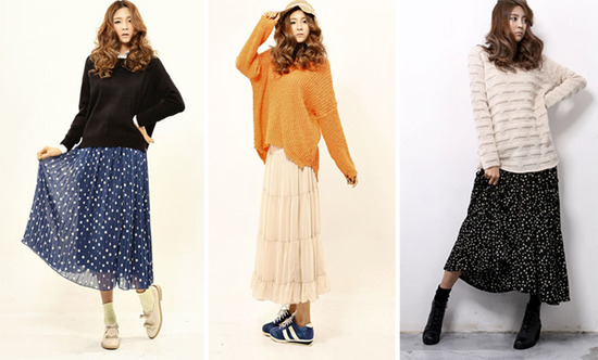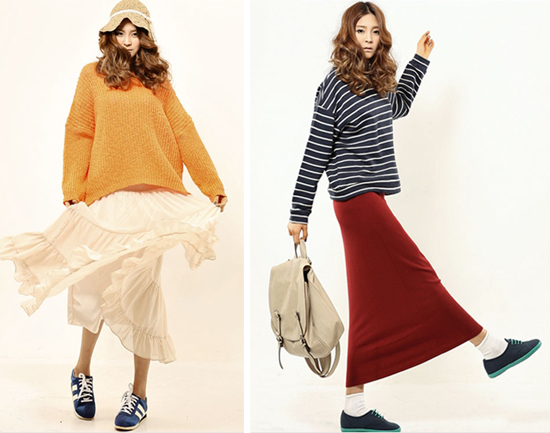 온라인 쇼핑몰 피치클래식 마케팅팀 정용희 팀장은 “롱스커트의 경우 발목까지 시선이 하나로 이어지기 때문에 미니스커트보다 오히려 키가 커 보인다. 때문에 키가 작은이들도 굽 없는 슈즈를 신기에 부담이 적다”고 말했다.