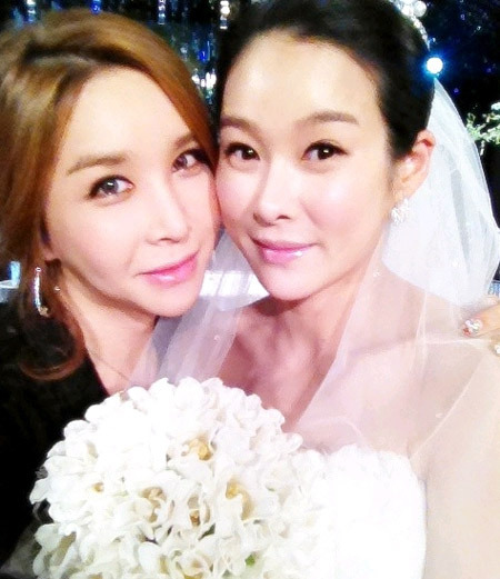 사진 속 하리수는 단정하게 머리를 묶은 채 카메라를 보며 살며시 미소짓고 있다. 그의 옆에는 웨딩드레스를 입고 부케를 든 채 하리수와 다정하게 사진을 찍고 있는 현영의 모습을 확인할 수 있어 눈길을 끈다.