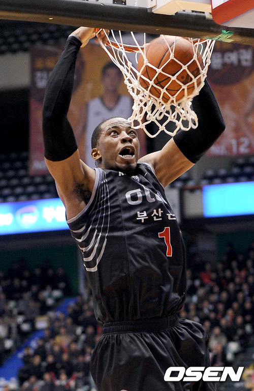 8일 오후 부산 사직실내체육관서 열린 '2011-2012 KB국민카드 프로농구' 6강 플레이오프 1차전 부산 KT와 인천 전자랜드의 경기 2쿼터 KT 로드가 덩크슛을 하고 있다.