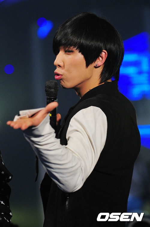 8일 오후 서울 상암동 CJ E&M센터에서 생방송으로 진행된 케이블 채널 Mnet ‘엠 카운트다운’(이하 엠카)에서 이준이 진행 중 키스를 날리고 있다.