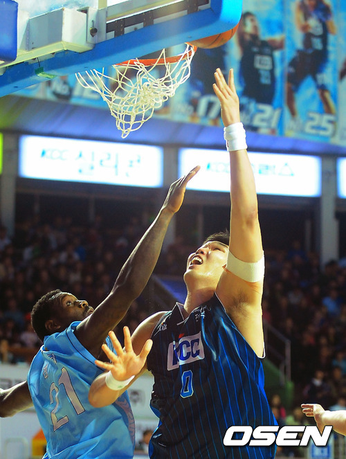 [OSEN=전주, 정송이 인턴기자] 9일 오후 전주실내체육관서 열린 '2011-2012 KB국민카드 프로농구' 6강 플레이오프 2차전 전주 KCC와 울산 모비스의 경기 중 KCC 하승진이 골밑슛을 넣고 있다.