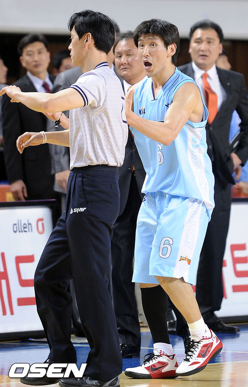 9일 오후 전주실내체육관서 열린 '2011-2012 KB국민카드 프로농구' 6강 플레이오프 2차전 전주 KCC와 울산 모비스의 경기 2쿼터 모비스 유재학 감독과 양동근이 판정에 항의하고 있다