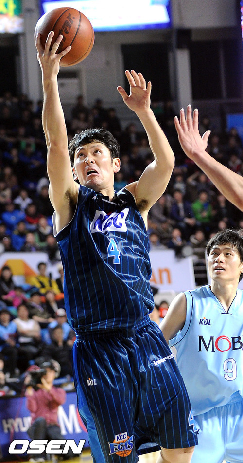 9일 오후 전주실내체육관서 열린 '2011-2012 KB국민카드 프로농구' 6강 플레이오프 2차전 전주 KCC와 울산 모비스의 경기 4쿼터 KCC 추승균이 레이업슛을 성공하고 있다