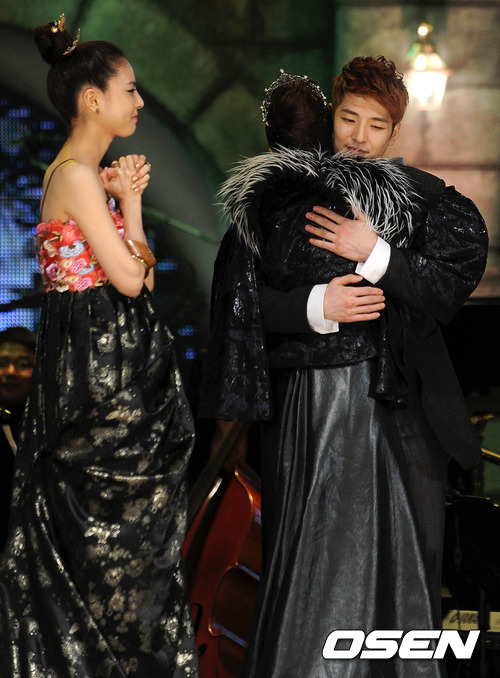 9일 오후 서울 서초동 한전아트센터에서 열린 tvN '오페라스타 2012' 세미 파이널에서 결승 진출을 확정지은 가수 박기영과 손호영이 포옹을 하고 있다.