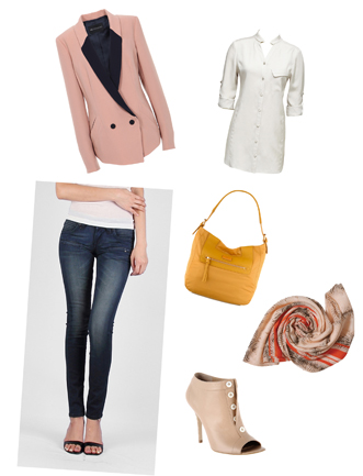 청바지 중에 여자의 다리라인을 가장 잘 살려주는 스키니 진은 마른 바디타입은 물론 볼륨 있는 바디 타입에도 모두 잘 어울리는 아이템이다. 스키니 진이 지나치게 타이트해서 힙 라인이 도드라지는 것이 부담스럽다면 루즈한 핏의 롱 상의와 테일러드 재킷으로 커버할 수 있다.