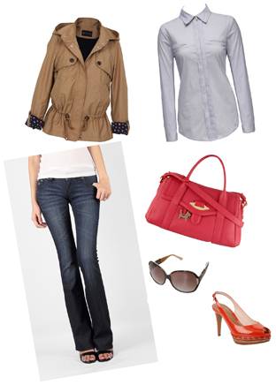 또한 부츠컷은 다리가 길어 보이는 효과를 갖고 있는데, 슬림하면서 짧은 상의와 오픈토 하이힐을 매치하면 그 효과를 배가 시킬 수 있다. 비비드한 컬러의 사첼백, 눈부신 봄 햇살을 막아줄 선글라스로 포인트를 주면 트렌디한 시티걸이 된다.