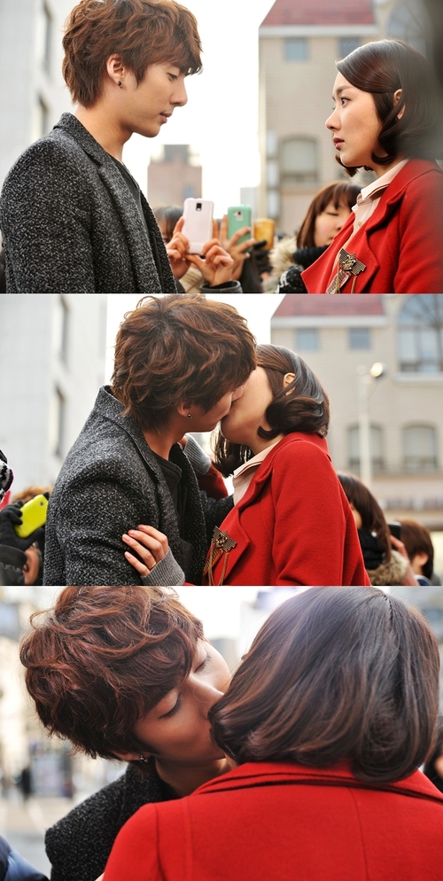 극중 지현이 마음을 받아주지 않자 민이 많은 사람들이 보는 길거리에서 키스를 감행한 것. 민은 극중 톱가수로 두 사람의 키스는 파장을 일으킬 것으로 보인다.