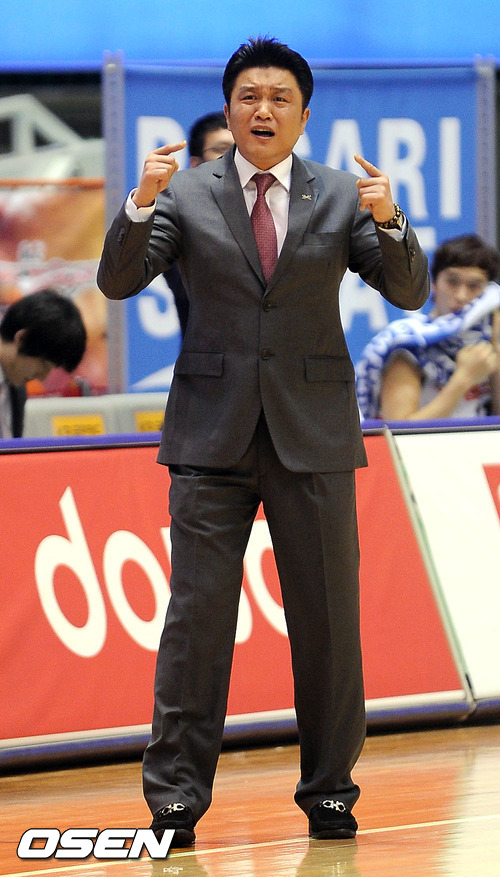 10일 오후 부산 사직실내체육관서 열린 '2011-2012 KB국민카드 프로농구' 6강 플레이오프 2차전 부산 KT와 인천 전자랜드의 경기 1쿼터 전자랜드 유도훈 감독이 아쉬운 표정으로 작전 지시하고 있다.