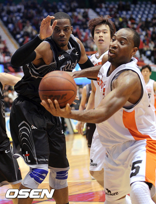 10일 오후 부산 사직실내체육관서 열린 '2011-2012 KB국민카드 프로농구' 6강 플레이오프 2차전 부산 KT와 인천 전자랜드의 경기 2쿼터 KT 로드가 슛블록 시도하고 있다