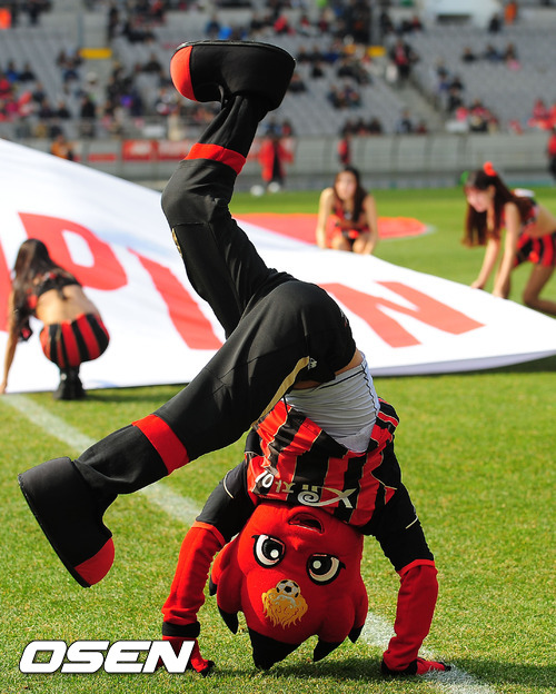 10일 오후 서울월드컵경기장에서 열린 '현대오일뱅크 K리그 2012' 2라운드 FC 서울과 전남 드래곤즈의 서울 홈 개막전 경기에서 서울 치어리더 및 씨드가 화려한 공연을 펼치고 있다.
