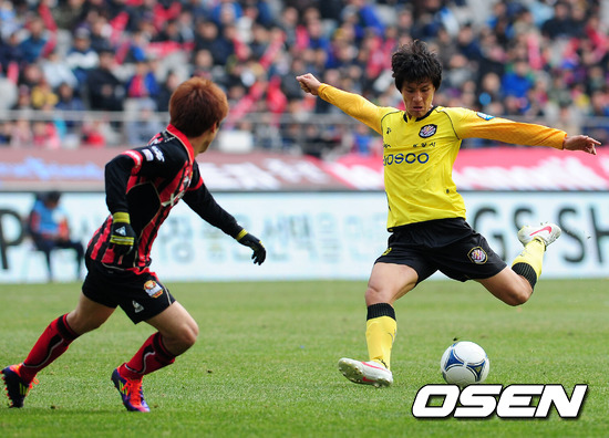 [OSEN=서울월드컵경기장, 곽영래 인턴기자] 10일 오후 서울월드컵경기장에서 열린 '현대오일뱅크 K리그 2012' 2라운드 FC 서울과 전남 드래곤즈의 서울 홈 개막전 경기에서 전반 전남의 김근철이 슈팅을 하고 있다.