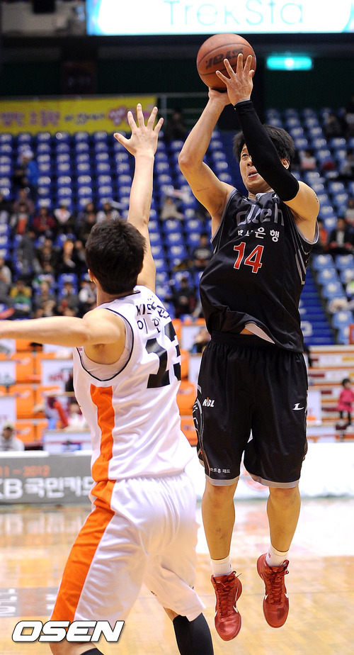 10일 오후 부산 사직실내체육관서 열린 '2011-2012 KB국민카드 프로농구' 6강 플레이오프 2차전 부산 KT와 인천 전자랜드의 경기 3쿼터 KT 박상오가 3점슛을 성공하고 있다