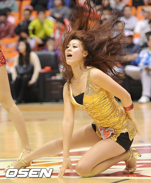 10일 오후 부산 사직실내체육관서 열린 '2011-2012 KB국민카드 프로농구' 6강 플레이오프 2차전 부산 KT와 인천 전자랜드의 경기 하프타임 KT 치어리더가 멋진 무대를 펼치고 있다.