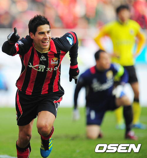 10일 오후 서울월드컵경기장에서 열린 '현대오일뱅크 K리그 2012' 2라운드 FC 서울과 전남 드래곤즈의 서울 홈 개막전 경기에서 후반 서울 몰리나가 전남 이운재를 뚫고 팀 두번째 골을 성공시킨 후 기뻐하고 있다.