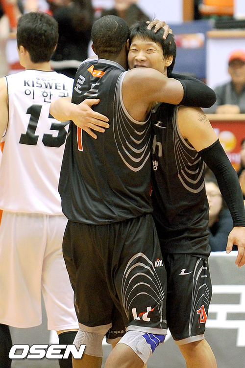 4쿼터 승부가 결정되자 KT 로드와 박상오가 세리모니를 하고 있다./soul1014@osen.co.kr