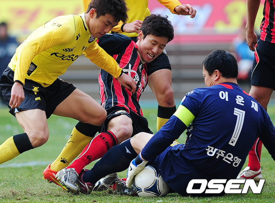 후반 서울 김태환이 전남 이운재와 볼다툼을 하고 있다. / baik@osen.co.kr