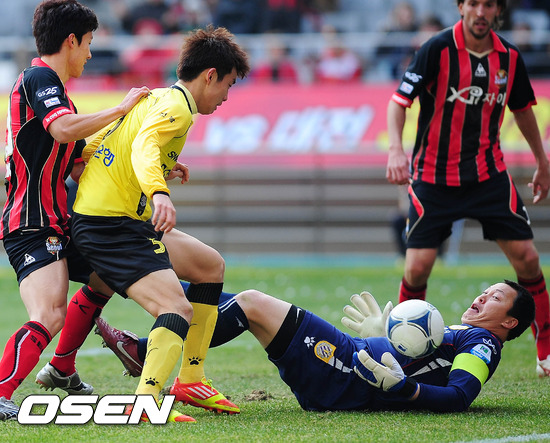 후반 전남 골키퍼 이운재가 볼을 놓치고 있다. / baik@osen.co.kr