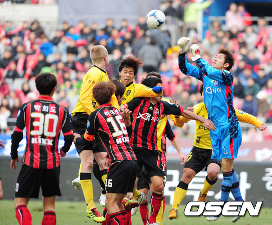 서울 김용대가 공중볼을 쳐내고 있다. / youngrae@osen.co.kr