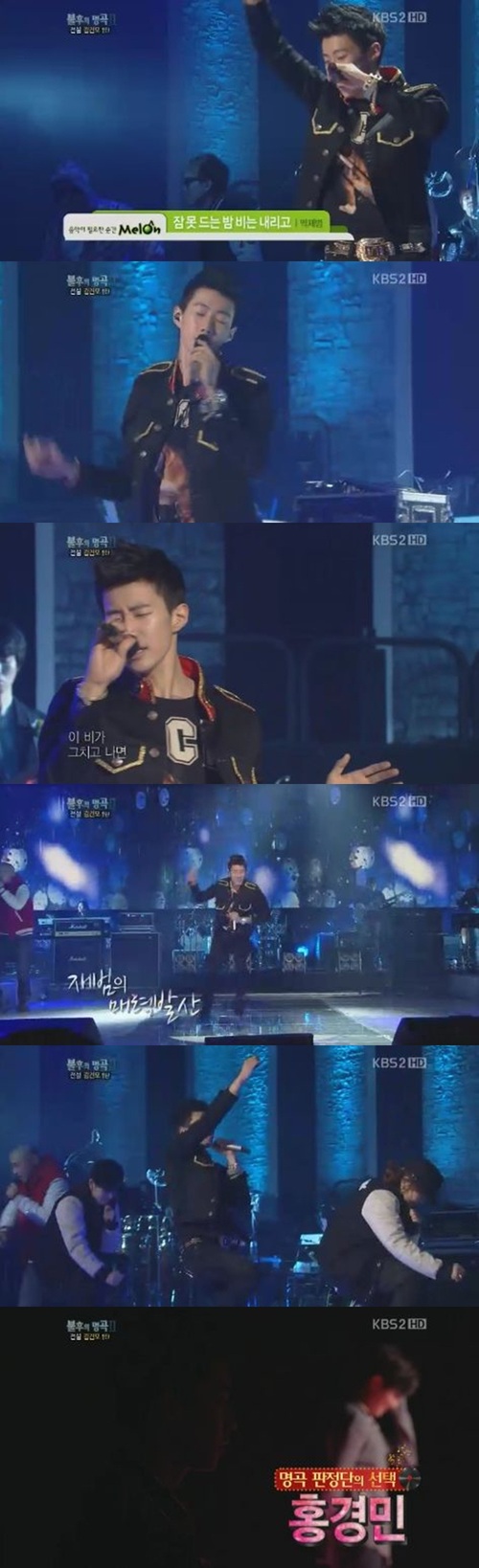 박재범은 김건모의 '잠 못드는 밤 비는 내리고'를 경쾌하고 감성적으로 편곡해 열창했다. 이날 박재범은 역시나 화려한 퍼포먼스와 랩으로 관객들을 사로 잡았다.