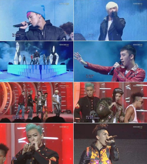 11일 오후 방송된 SBS '인기가요'에는 빅뱅이 출연, '블루', '배드보이', '판타스틱 보이' 등 총 세곡을 열창하며 화려한 컴백을 알렸다.