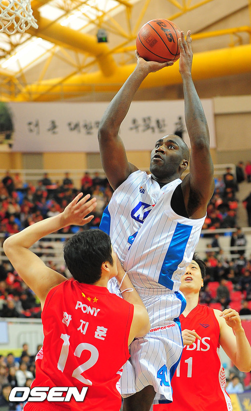 11일 오후 울산 동천실내체육관서 열린 2011-2012 KB국민카드 프로농구 6강 플레이오프 3차전 울산 모비스와 전주 KCC의 경기 1쿼터 KCC 왓킨스가 골밑슛을 시도하고 있다