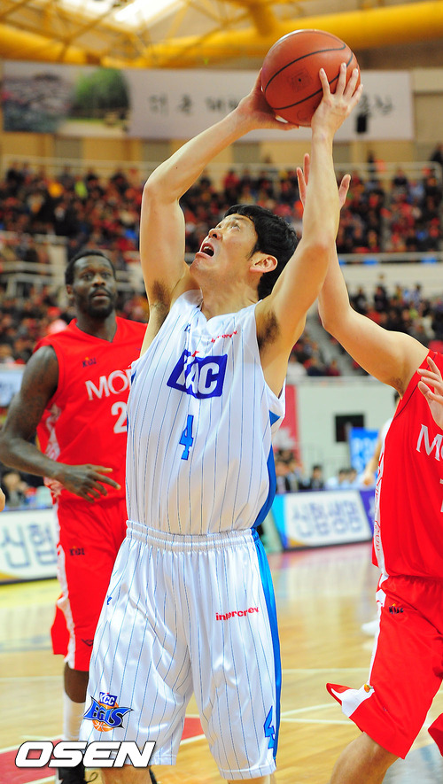 11일 오후 울산 동천실내체육관서 열린 2011-2012 KB국민카드 프로농구 6강 플레이오프 3차전 울산 모비스와 전주 KCC의 경기 1쿼터 KCC 추승균이 골밑슛을 성공하고 있다
