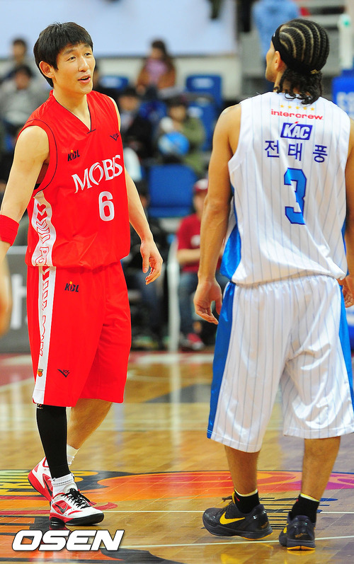 11일 오후 울산 동천실내체육관서 열린 2011-2012 KB국민카드 프로농구 6강 플레이오프 3차전 울산 모비스와 전주 KCC의 경기 3쿼터 시작전 모비스 양동근과 전태풍이 이야기를 나누고 있다.
