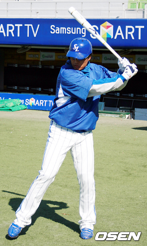 9년 만에 사자 군단에 복귀한 '국민타자' 이승엽(삼성)이 11일 오후 대구구장에서 타격 훈련을 소화하고 있다. 한편 경북고를 졸업한 뒤 1995년 삼성에 입단한 이승엽은 9년간 통산 1143경기에 출장, 타율 3할5리 1286안타 324홈런 948타점 883득점을 기록했다. 개인 통산 5차례(1997, 1999, 2001, 2002, 2003년)에 오르며 홈런 타자의 대명사로 자리잡았다. 특히 2003년 6월 22일 대구 SK전에서 세계 최연소 개인 통산 300홈런 고지를 밟았다. 그리고 2003년 10월 2일 롯데와의 홈경기서 시즌 56호 아치를 쏘아 올리며 아시아 한 시즌 최다 홈런 신기록을 수립하기도 했다. what@osen.co.kr