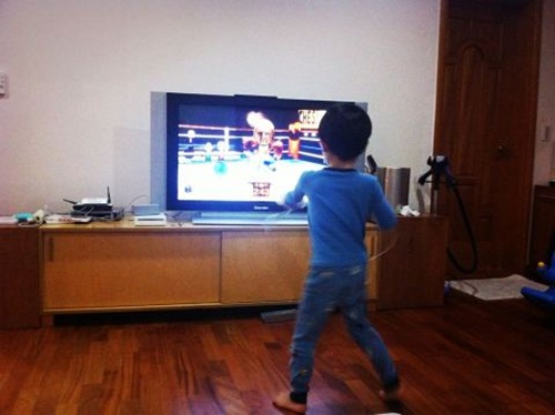 사진 속 라익이는 모니터에 빨려 들어갈 듯한 기세로 권투게임에 푹 빠져 있는 모습이다. 살짝 흔들리게 찍힌 라익이의 뒷모습은 사진에 역동감을 더 하고 있다.