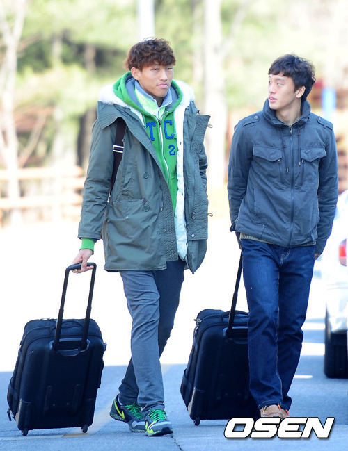 올림픽 국가대표팀 김승규와 오재석이 파주 트레이닝 센터로 들어가고 있다.