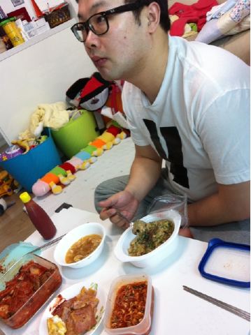 김경아는 12일 오전 자신의 트위터에 "다이어트를 위해 '이승윤의 알통 28호 도시락'을 먹는 남편. 햄이랑 장조림이랑 같이 먹어도 되는건지... "라는 글과 함께 사진을 게재했다.