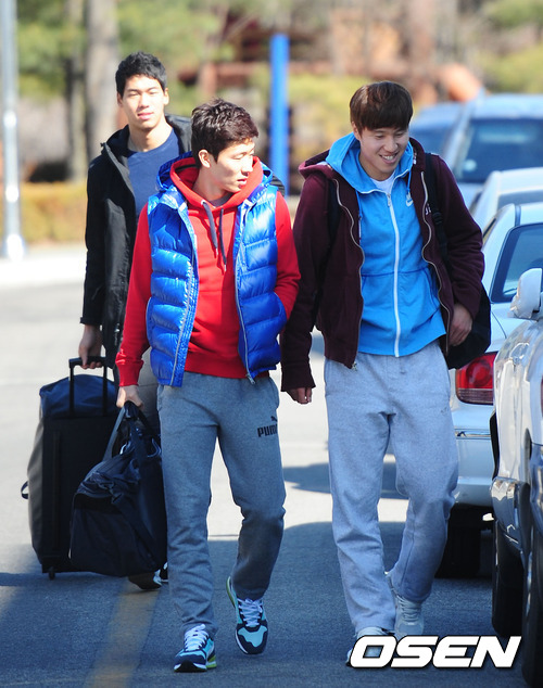 올림픽 국가대표팀 이범영과 김태환과 김현성이 파주 트레이닝 센터로 들어가고 있다.